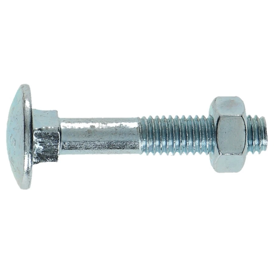 Boulon TRCC (Japy), boulon tête ronde collet carré avec écrou, en acier zingué blanc.