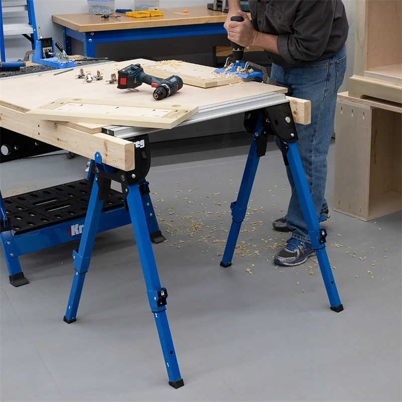- Polyvalent : utlisation possible comme chevalet de sciage, support de travail, table de serrage et bien plus.