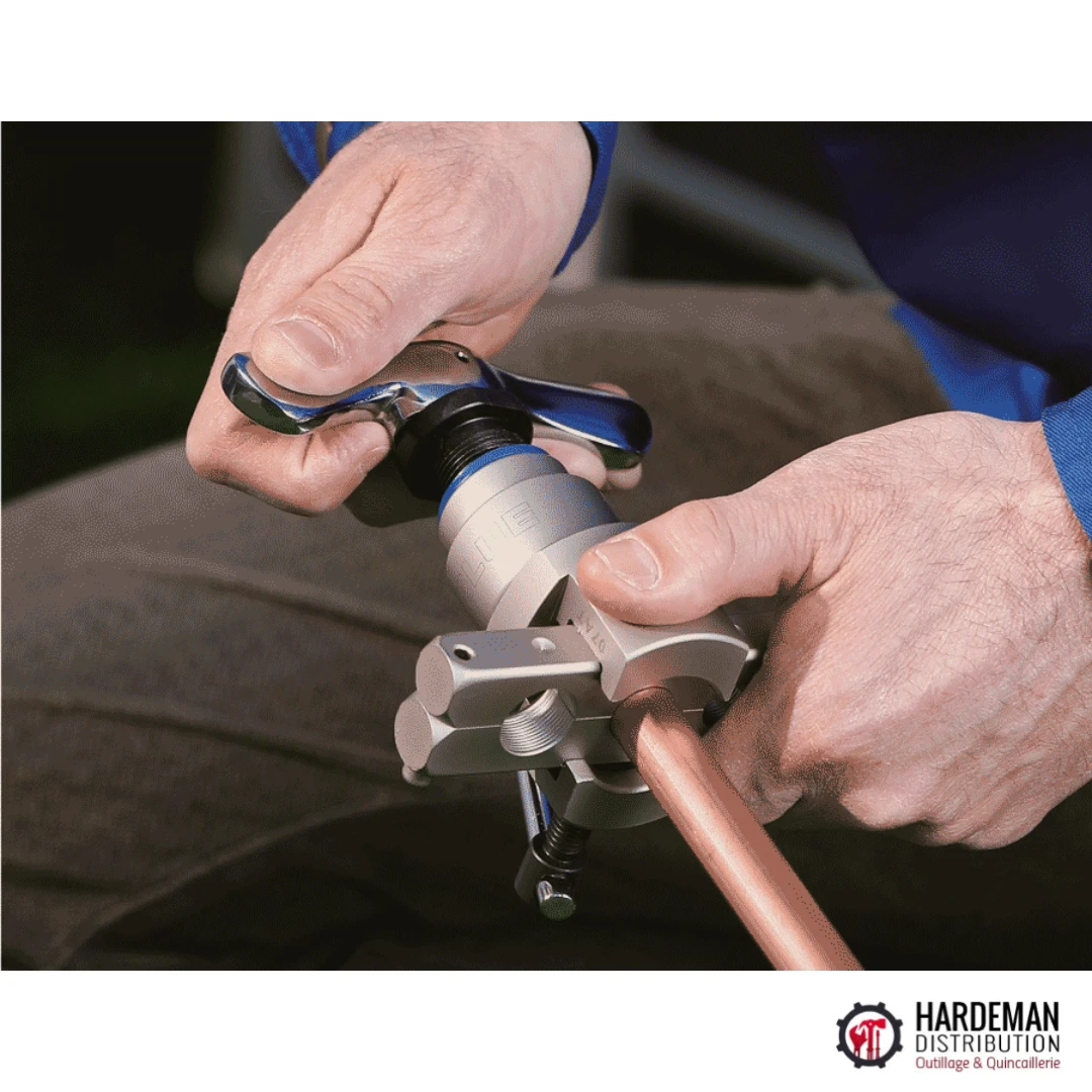 Grâce à la dudgeonnière, l’évasement du tube de cuivre permet d’obtenir un écrou prisonnier pour le raccordement des liaisons frigorifiques sur les installations.