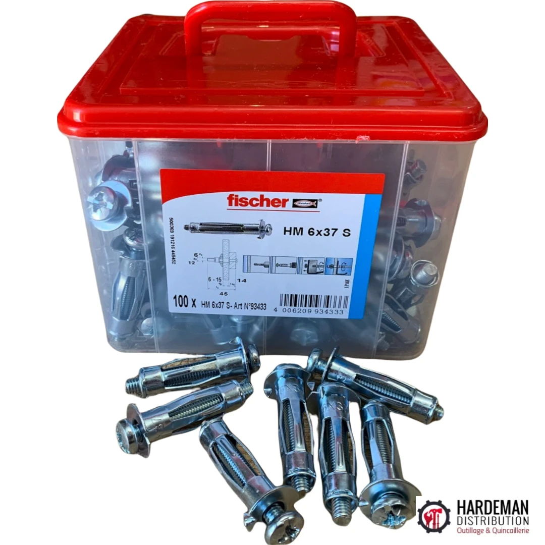 Chevilles à expansion en conditionnement professionel. Les chevilles métalliques à expansion pour cloisons creuses sont parfois connues sous la dénomination « chevilles Molly®« . Il s’agit d’un marque déposée, cette marque n’est pas distribuée sur notre site. Les chevilles HM de fischer sont de même type, pour des apllications similaires.