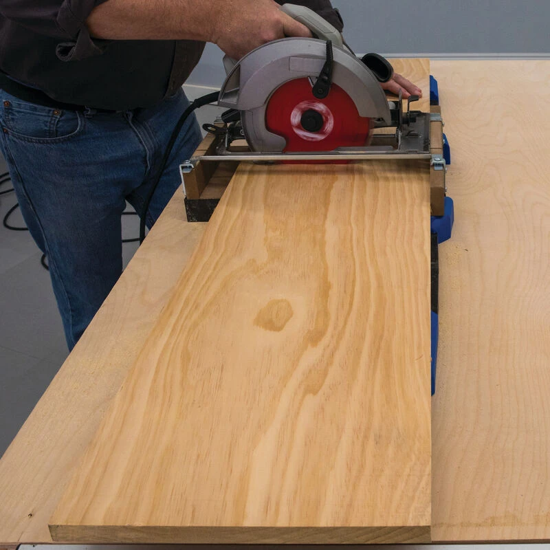 Obtenez des coupes sans éclats grâce à une base en MDF et le Sure-Cut ™ panneau qui agit comme surface sacrificielle.