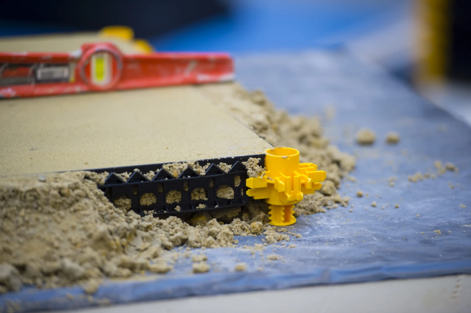 Le système de nivelage avant de couler le béton permet une chape plane et sans fissures