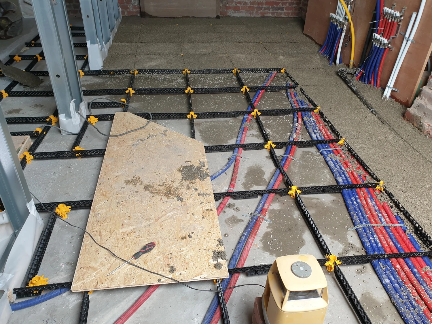 Le système de mise à niveau pour dalles et chapes Staenis est compatible avec le chauffage au sol