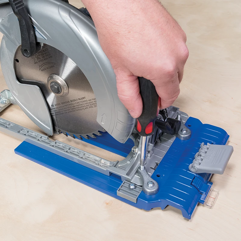 Le Rip-Cut™ est très facile à utiliser. Montez simplement votre scie sur le chariot universel (il accepte la plupart des scies, à lame gauche ou droite) et glissez-le sur le rail en aluminium. Après un simple calibrage, verrouillez la largeur de coupe (jusqu’à 610 mm ou 24″) grâce à l’échelle de mesure et au curseur de précision. Ensuite, maintenez le guide de positionnement aligné sur le bord de la pièce pendant que vous guidez la scie. Vous obtiendrez facilement des coupes droites, précises et répétitives à chaque fois.