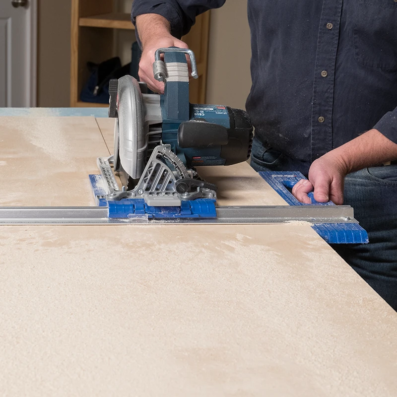 Les bons projets commencent par des coupes de haute qualité que vous pouvez réaliser très facilement grâce à la scie circulaire et au guide de positionnement circulaire du Rip-Cut™.