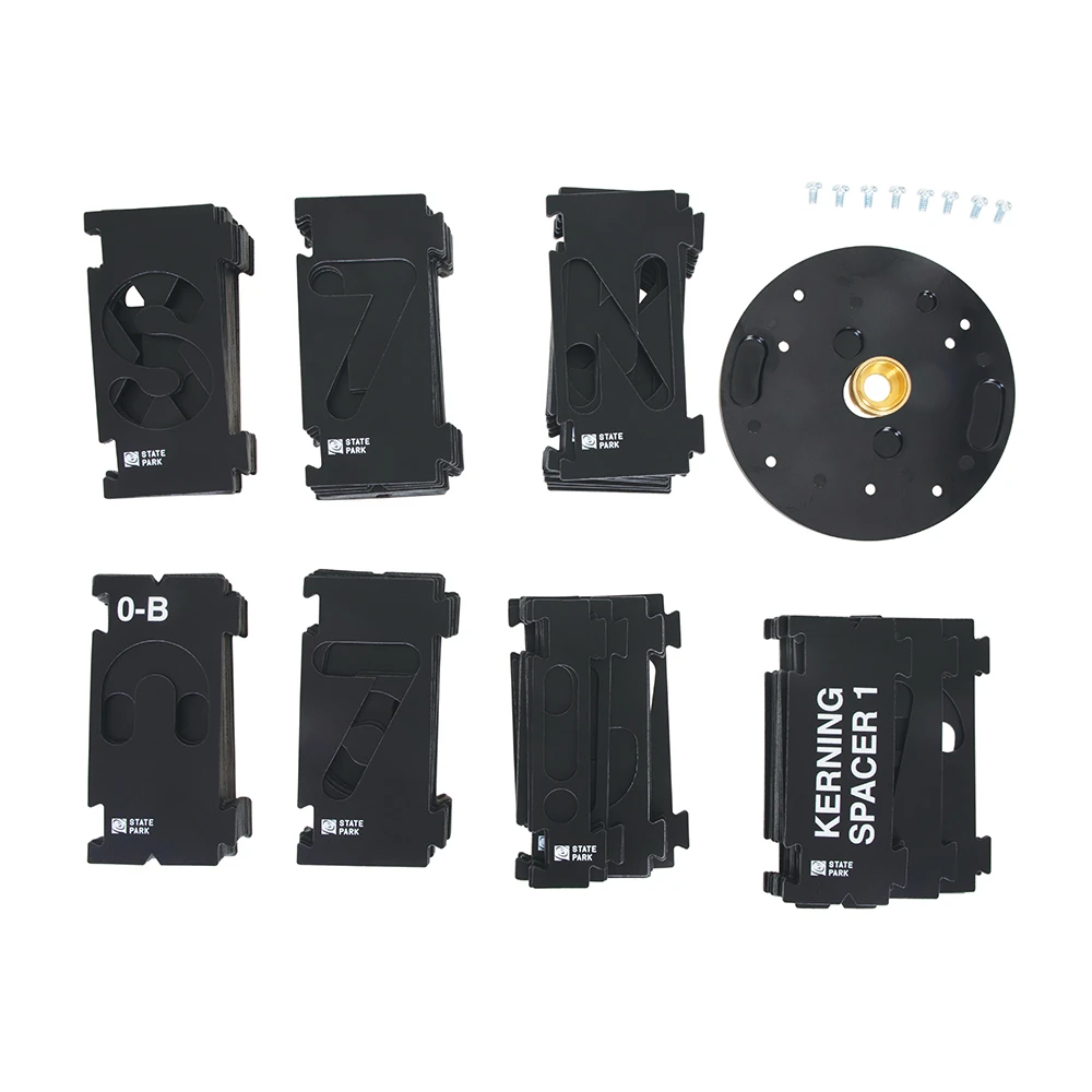 Cet ensemble fonctionne avec une bague de guidage en laiton de 9,52 mm (fournie) et une fraise « signalétique » de 9,52 mm (vendue séparément). Pour info : 9,52 mm = 3/8″