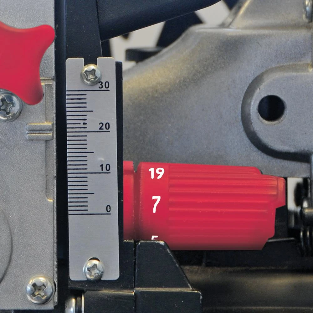 Les perfectionnistes adoreront la précision de la plage de la profondeur de coupe réglable de 0 à 19 mm, tandis que le guide robuste en aluminium bénéficie d’une plage d’angle de travail de 0 à 135° afin de pouvoir réaliser une grande diversité de coupes différentes.