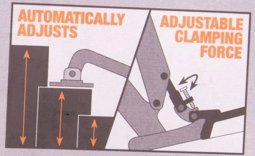 Mécanisme certifié (ajustement auto) permettant de conserver une pression homogène peut importe l’épaisseur du matériau, et ce sans réajustement.