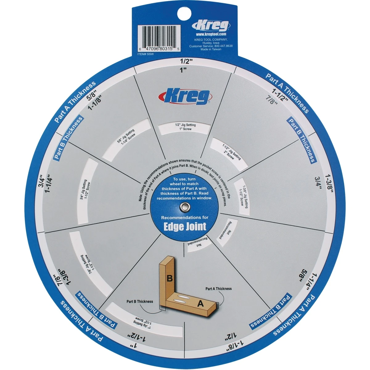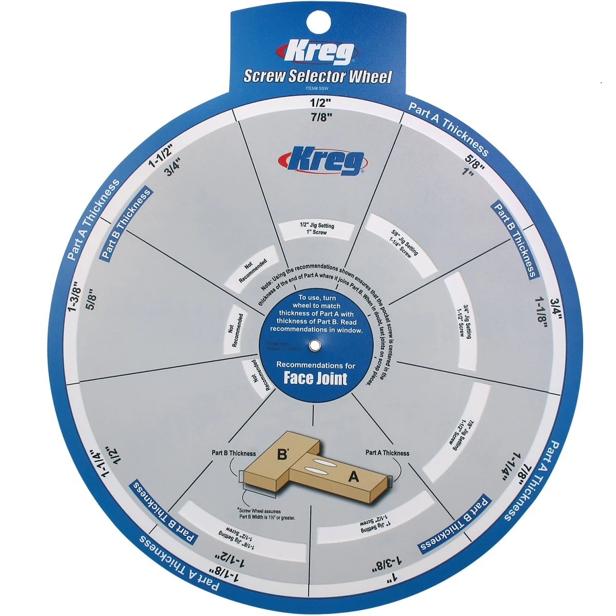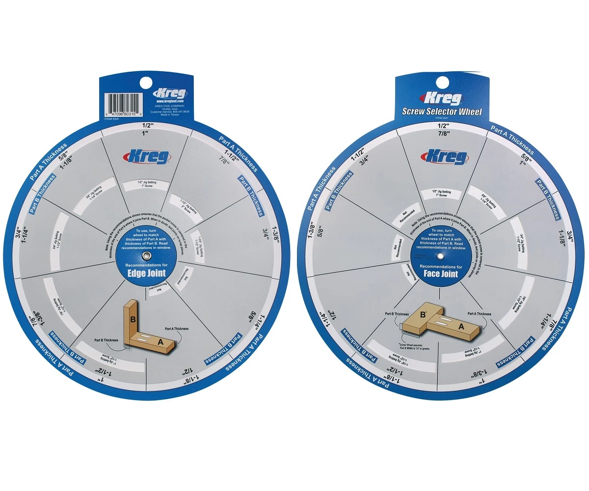 Rosace de sélection de vis Kreg pour assemblages droits et à l’équerre