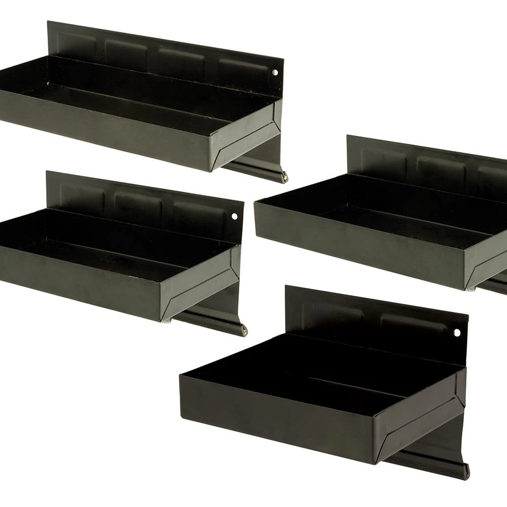 Plateaux robustes en acier. Se fixe sur toute surface d’acier plane. Caoutchoucs pour éviter les rayures. 4 largeurs différentes: 150, 215, 270 et 310 mm.