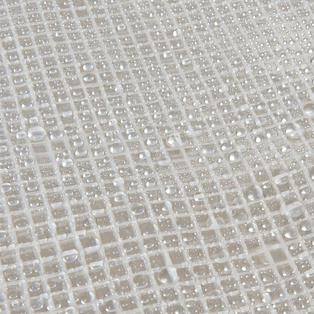 Transparente, avec bords en cordon renforcés par des coutures thermoscellées et coins renforcés par revêtement plastique.