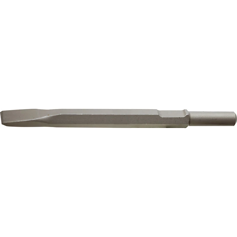 Burin hexagonal plat trempé matricé avec fini grenaillé. Pour travaux généraux de pénétration et de démolition. Parfait pour travailler sur maçonnerie, pierre, brique et béton. Emmanchement hexagonal 29 mm. Compatible avec le marteau piqueur électrique Silverstorm 1 500 W (263570).