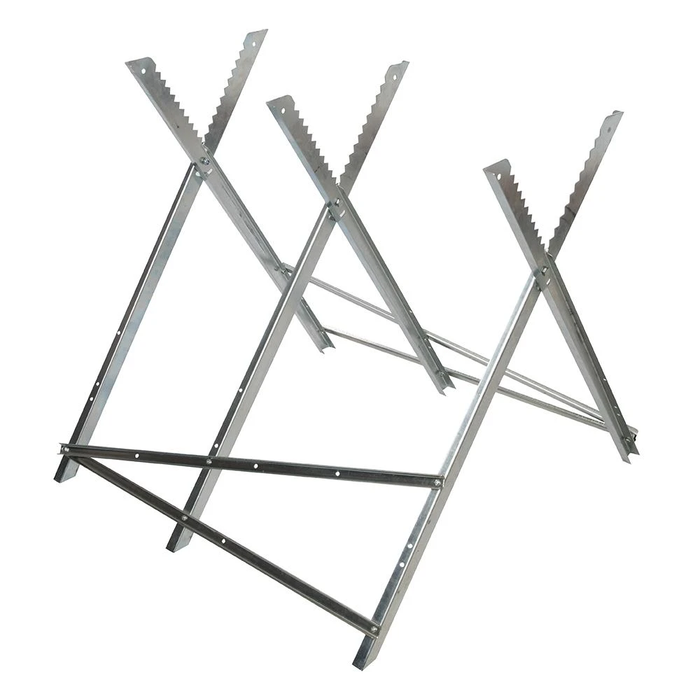 Chevalet pliant de construction robuste en acier à bords dentelés. 3 réglages en largeur. Pour sciage à la scie à main ou à la tronçonneuse de bûches allant jusqu’à 150 kg et 250 mm de diamètre. Dimensions une fois assemblé : 790 mm (hauteur) x 850 mm (longueur). Pliable, pour un rangement facile.
