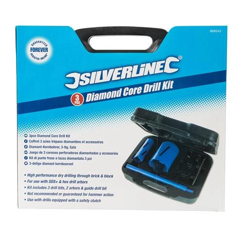 Scies trépans diamantées haute performance, pour perçage à sec de trous nets quasiment sans éclats.