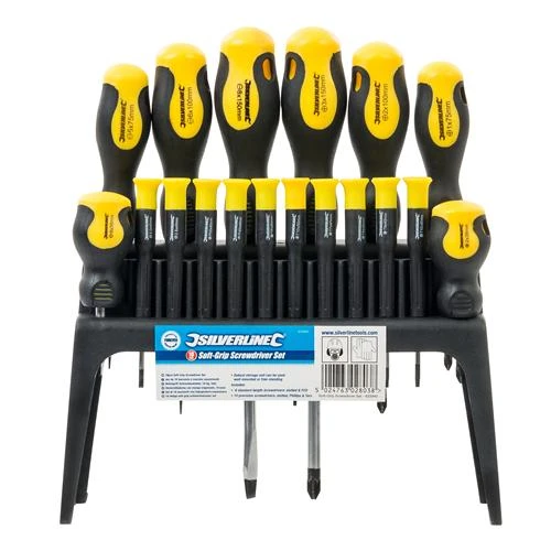 | Ensemble de 18 tournevis à manche caoutchouté Silverline 633940 Code EAN 5024763028038 |