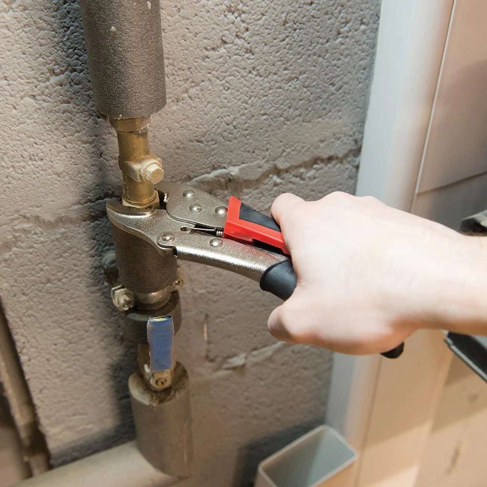 Pinces autobloquantes en acier nickelé à mâchoires incurvées. Ouverture réglable. Poignées caoutchoutées à levier de desserrage rapide. Tailles : 13, 17 et 21 mm.