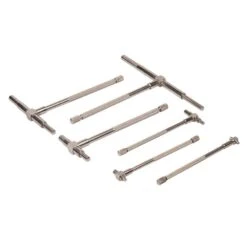 Poignées, écrous de serrage et pistons autocentrés moletés. Tension par ressort constante pour une pression de contact uniforme. Pour la mesure rapide de l’intérieur des cylindres. Mesure indirecte par micromètre extérieur. Comprend : 8-12,7, 12,7-19, 19-32, 32-54, 54-90 et 90-150 mm.