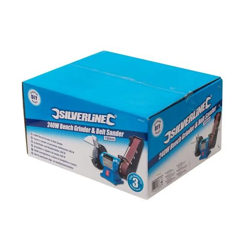 Outil 2-en-1 constitué d’un touret à meuler de 150 mm et d’une ponceuse à bande. Structure robuste en fonte d’aluminium et moteur à induction longue durée de vie avec roulements scellés. Interrupteur étanche à la poussière et pieds caoutchoutés. Idéal pour le meulage des métaux et le ponçage de divers matériaux tels que le métal, le bois et le plastique. Vitesse à vide : 2 950 tr/min (touret), 15 m/s (ponceuse à bande). Fourni avec : meule, bande de ponçage grain 80, 2 repose-outils en acier, pare-étincelles et écran protecteur.