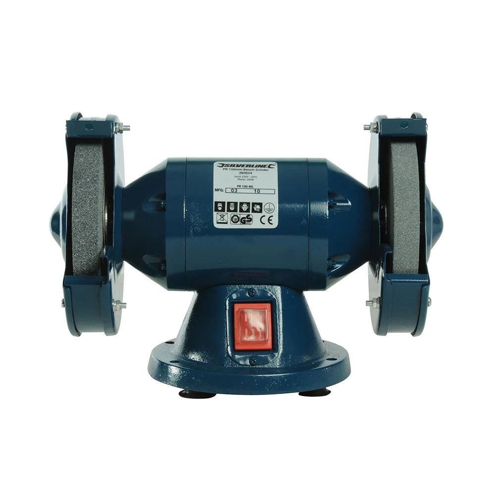 Touret à meuler équipé de meules abrasives de 150 mm de granulométrie différente : grain gros (36) et fin (60).
