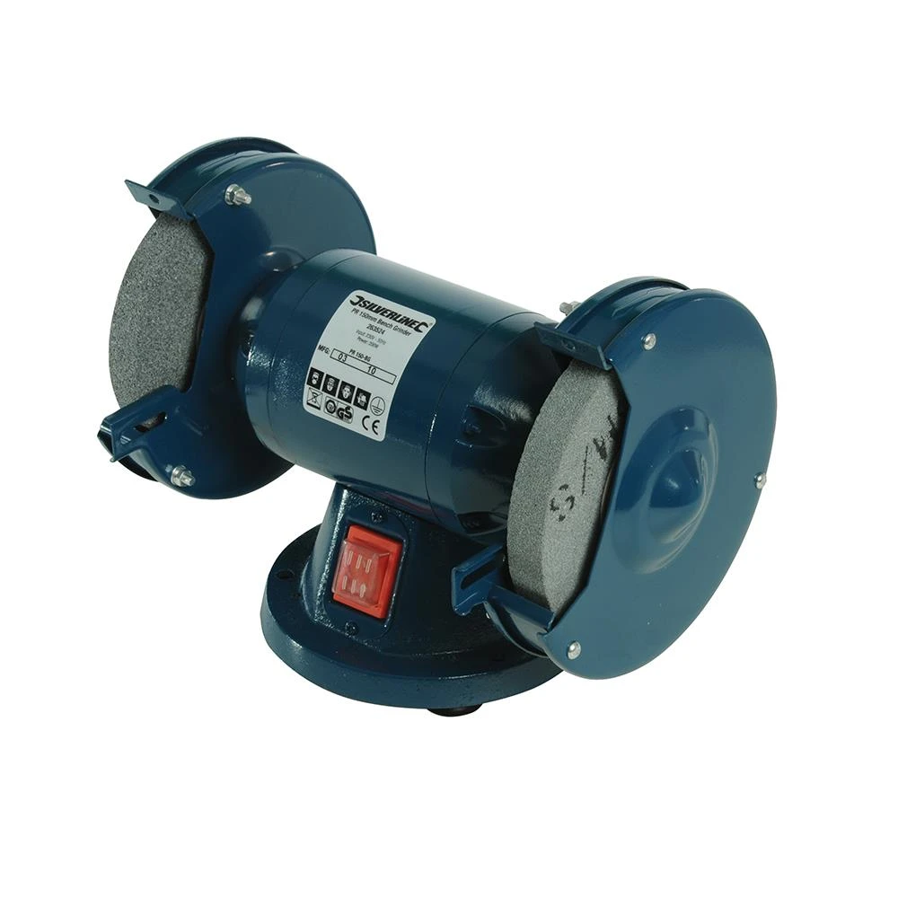 Comprend 2 porte-outils tout en acier et réglables, de grands écrans protecteurs, des pare-étincelles et des dispositifs de protection pour les meules garantissant la sécurité de l’utilisateur.