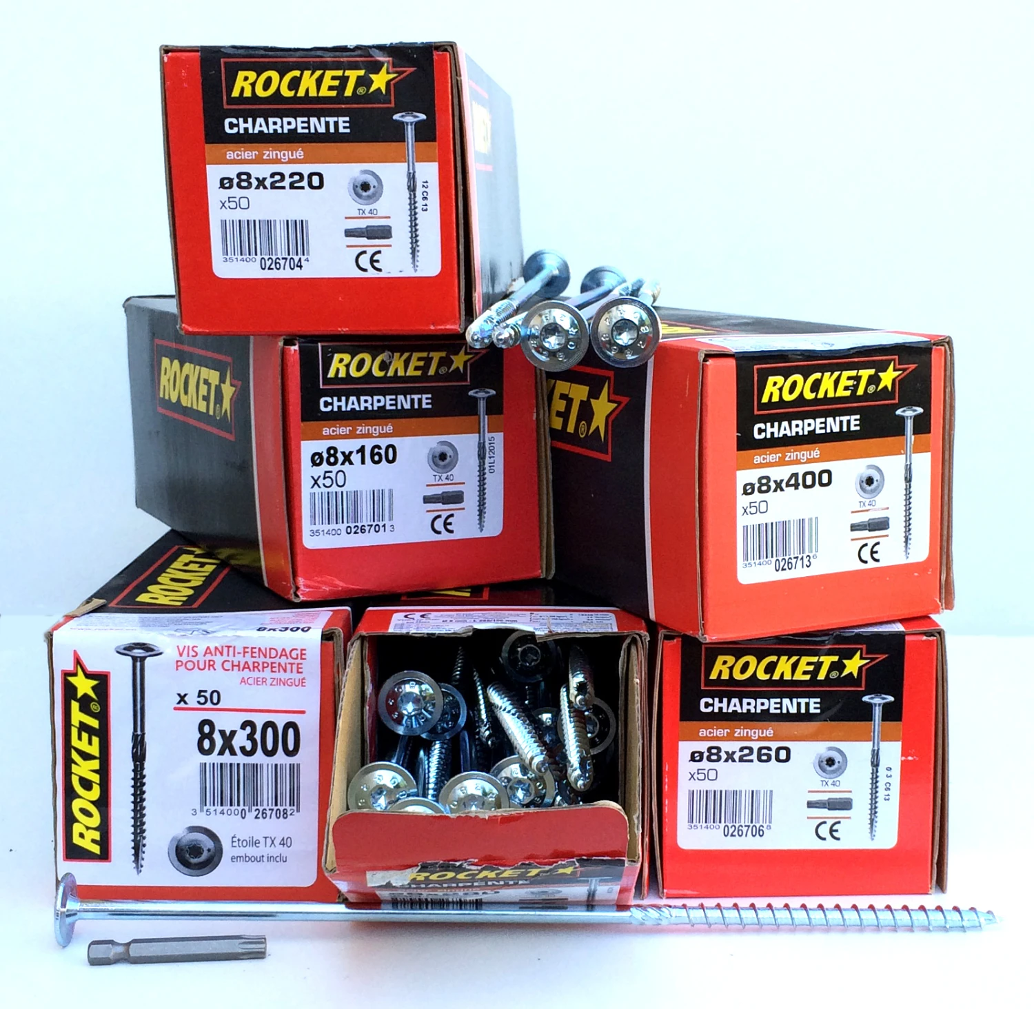 La vis à charpente Rocket avec tête extra large et filetage partiel convient parfaitement pour toutes les utilisation dans la construction bois : charpente, pose d’isolants et autres applications techniques nécessitant une fixation de qualité.