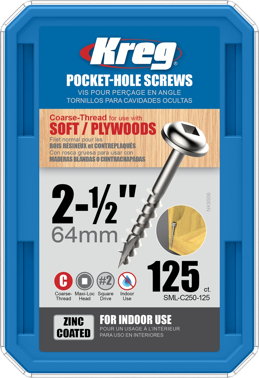 Vis 64 mm pour trous dissimulés – boite de 125 vis Kreg