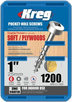Vis Kreg SPS 25 mm à tête cylindrique et pas grossier : boite de 1200 vis No 7 x 1″