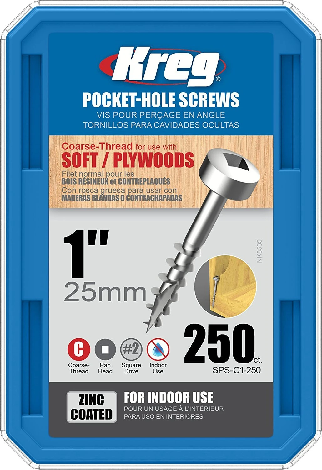 Vis Kreg SPS 25 mm à tête cylindrique et pas grossier : boite de 250 vis No 7 x 1″
