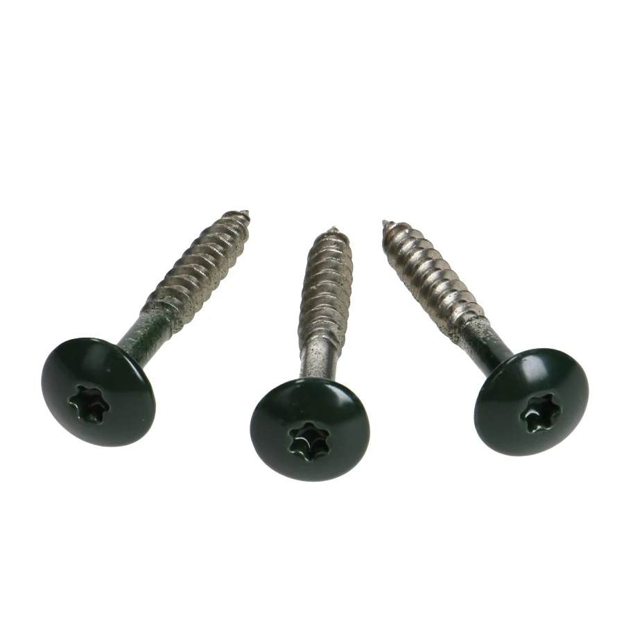 Vis pour bardage HPL composite en inox à tête colorée vert sapin RAL 6009